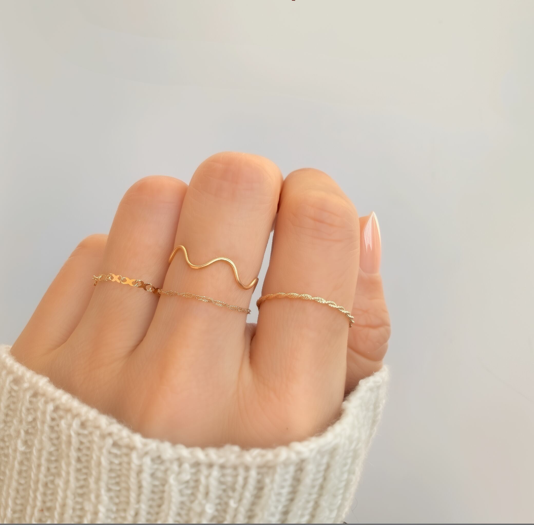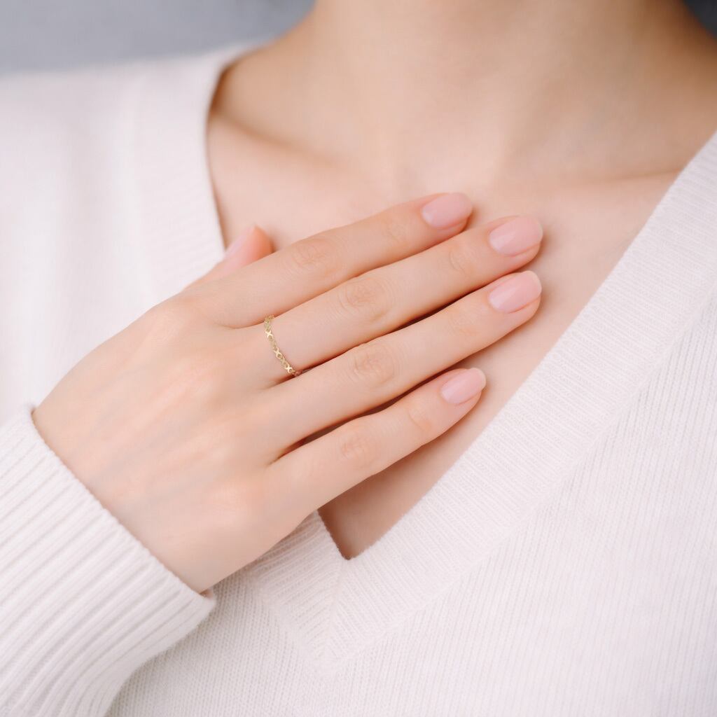 K18の上質な輝きを、軽やかに楽しめるチェーンリング。